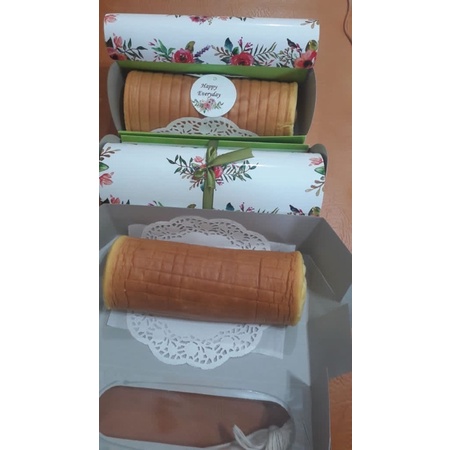 Roll cake dibuat dari campuran telur, gula, susu, butter dan polesan butter cream homemade.