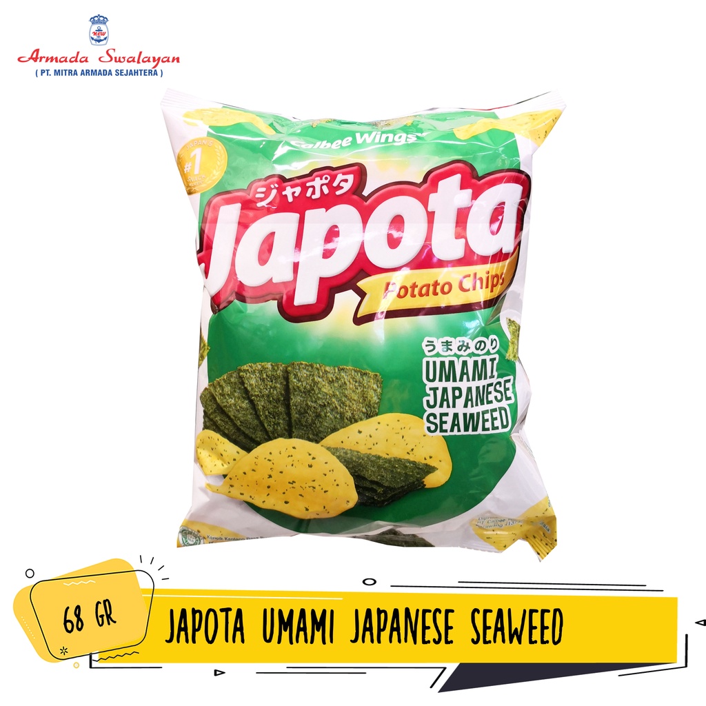 Japota terbuat dari kentang asli, diolah menggunakan thin-cut technology yang bikin asli krenyesnya! Chips-nya tipis, berpadu dengan taburan bumbu yang gurih-gurih mantap! Mau dimakan sendirian atau bareng teman, dijamin kamu gak bakal bisa nolak enaknya Japota.