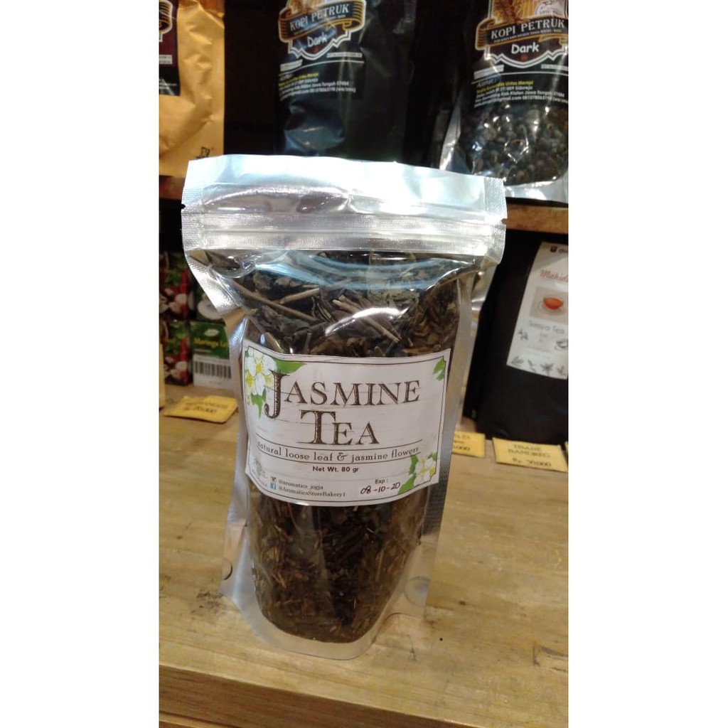 Daun teh hijau dicampur dengan bunga melati memberikan aroma rasa yang menyegarkan dan menenangkan. Bunga melati telah diteliti bermanfaat sebagai aroma terapi yang bisa membantu untuk mengurangi rasa stress dan memberikan efek relaksasi.