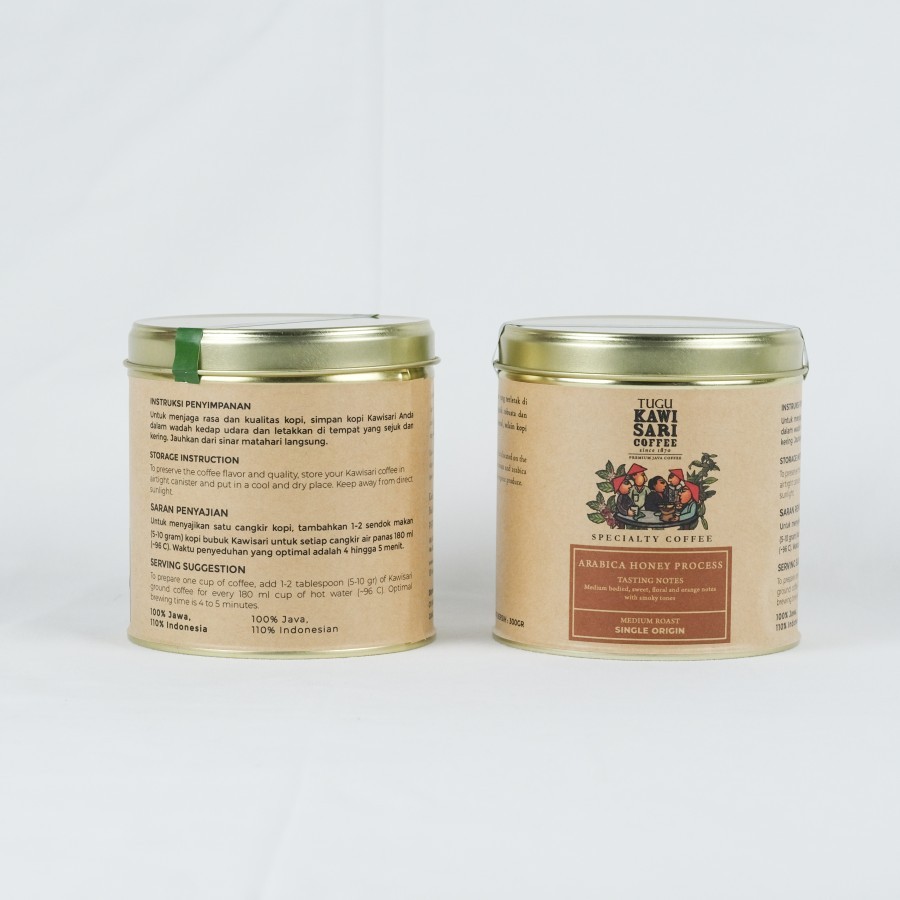 Kawisari Arabica Honey Process tidak dihaluskan tetapi dibiarkan kering tanpa dicuci, memungkinkan beberapa lendir emas dan lengket yang mengingatkan pada madu untuk memberikan rasa kopi yang lebih kompleks di cangkir Anda
