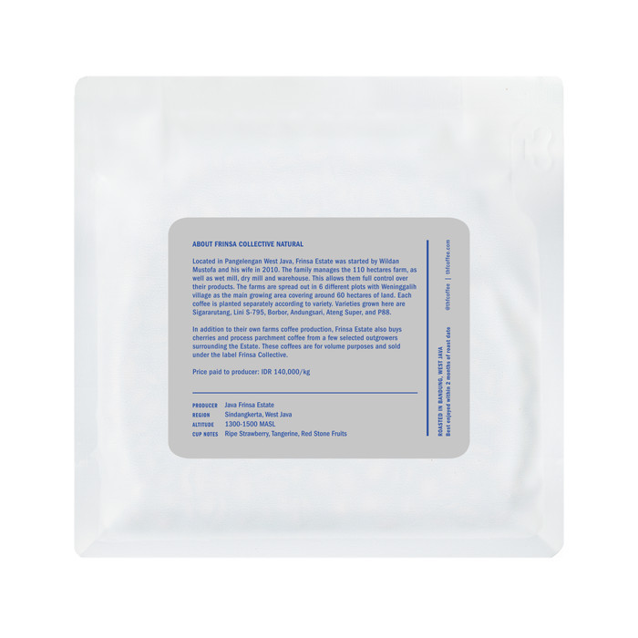 Located in Pangelengan West Java, Frinsa Estate was started by Wildan Mustofa and his wife in 2010. The family manages the 110 hectares farm, as well as wet mill, dry mill and warehouse. This allows them full control over their products. The farms are spread out in 6 different plots with Weninggalih village as the main growing area covering around 60 hectares of land. Each coffee is planted separately according to variety. Varieties grown here are Sigararutang, Lini S-795, Borbor, Andungsari, Ateng Super, and P88.