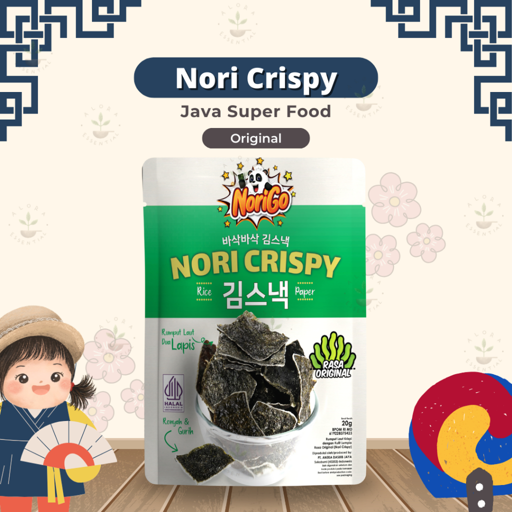 Nori Crispy Java Super Food Merupakan cemilan rumput laut dengan kulit lumpia. Nori Crispy cocok untuk dijadikan teman ngemil untuk beraktivitas, Seperti menonton TV, Belajar dan Bersantai