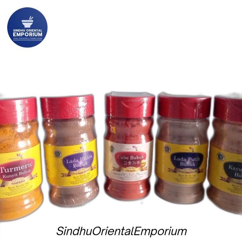 JavaSuperFood Bumbu Bubuk Lada Hitam/Lada Putih/ Cabe halus/Kunyit/Kayu manis Kemasan 50gram