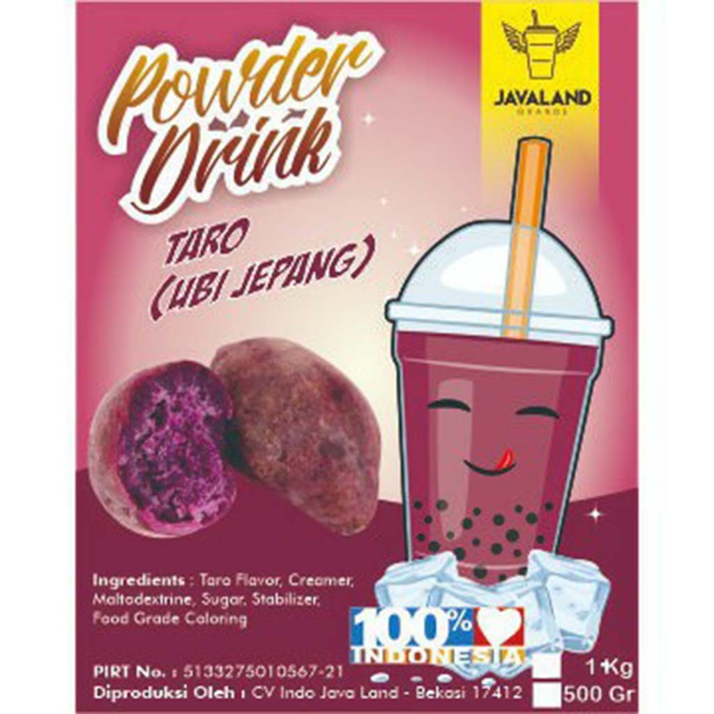 Bubuk / serbuk minuman javaland reguler plain rasa Taro dengan kemasan repack plastik 250 gram yang nikmat dan berbeda.