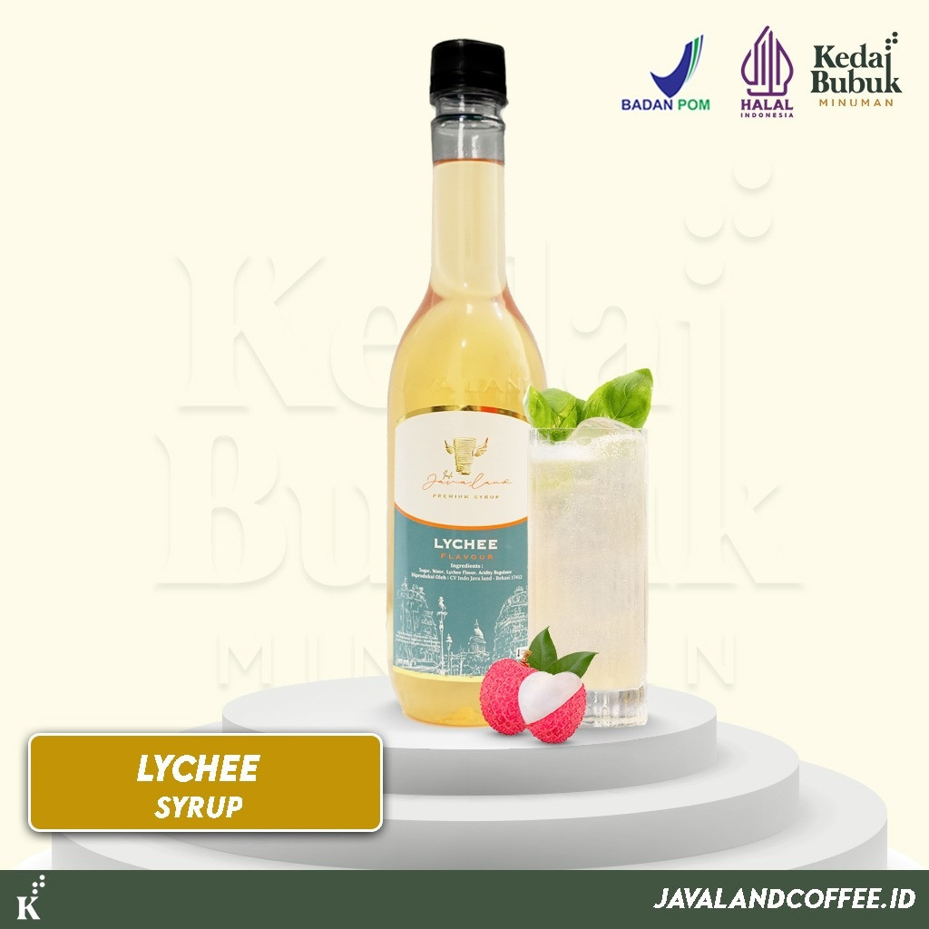 Sirup Javaland Premium rasa Lychee / Leci, cocok untuk *campuran* berbagai jenis minuman dan kopi.