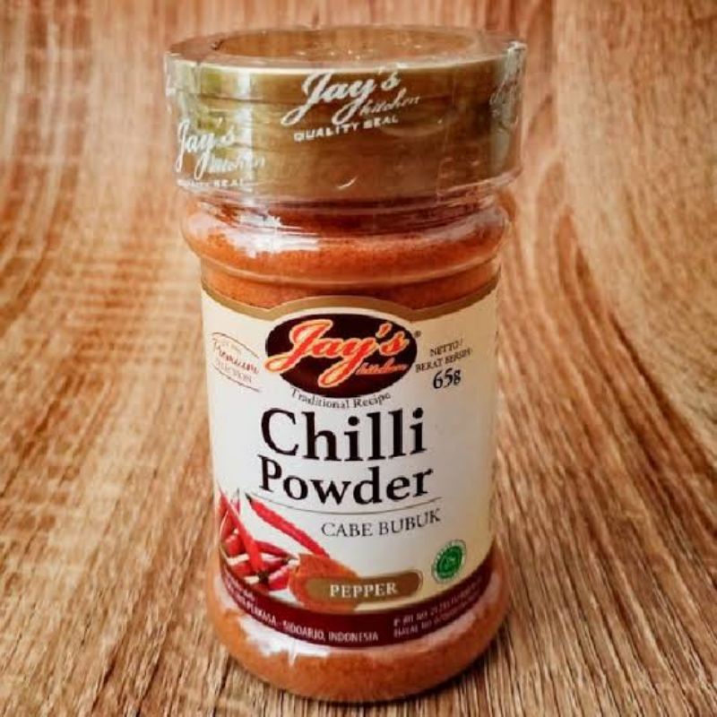 Bumbu masak cabe bubuk Jay's Chili Powder terbuat dari cabe merah asli pilihan, dapat ditambahkan pada segala jenis masakan terutama pada saus rendaman barbecue dan saus barbecue.