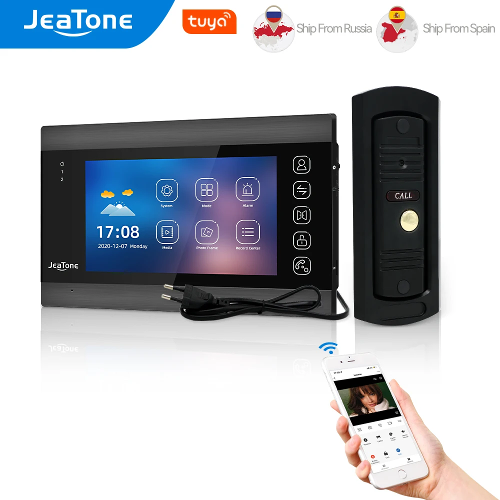 Jeatone Wi-Fi Tuya 7 ''черный видеодомофон с 720P/AHD проводной дверной звонок камера удаленное Обнаружение движения
