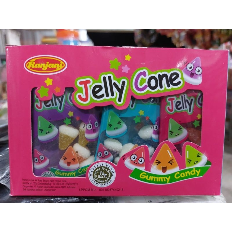 Jelly Cone Gummy Candy Permen Jeli Rasa Stroberi Apel Anggur Jeruk Ranjani Box Isi 30 Pcs 5 Gr