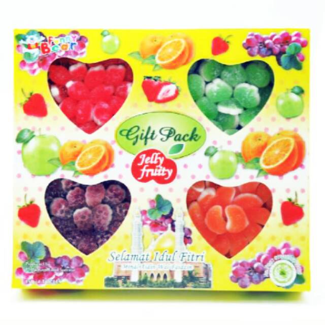 Aneka jelly buah, 4toples jeli dalam 1 paket cantik, dengan harga ekonomis..Rasa jellynya yg lezat, tentu saja akan menjadi hadiah yg sangat indah untuk buah hati atau sanak saudara tercinta..