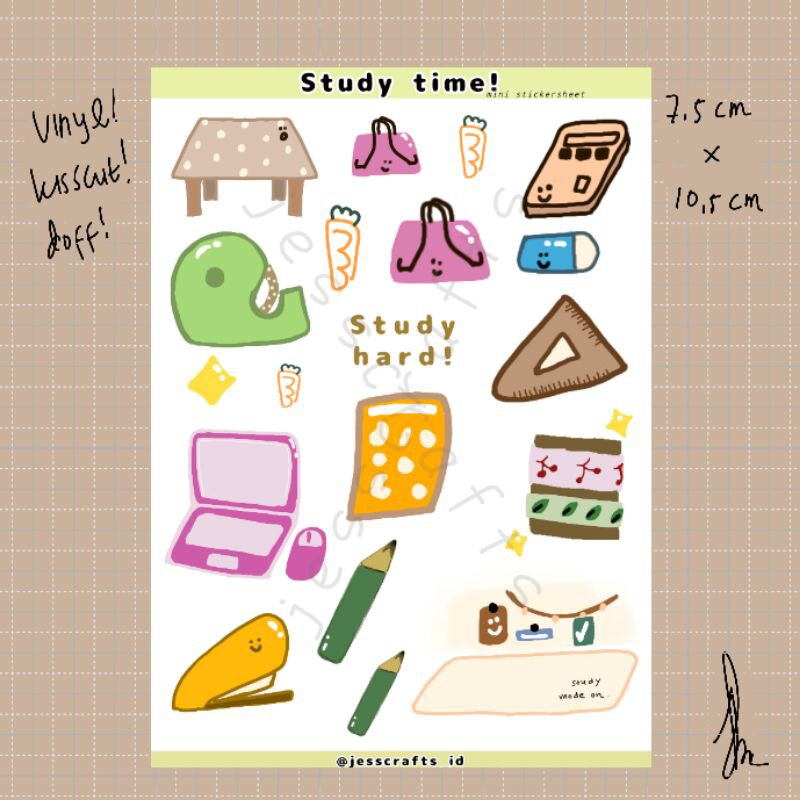 Stickersheet "study time" ini adalah koleksi dari Mini stickersheet series jesscrafts.