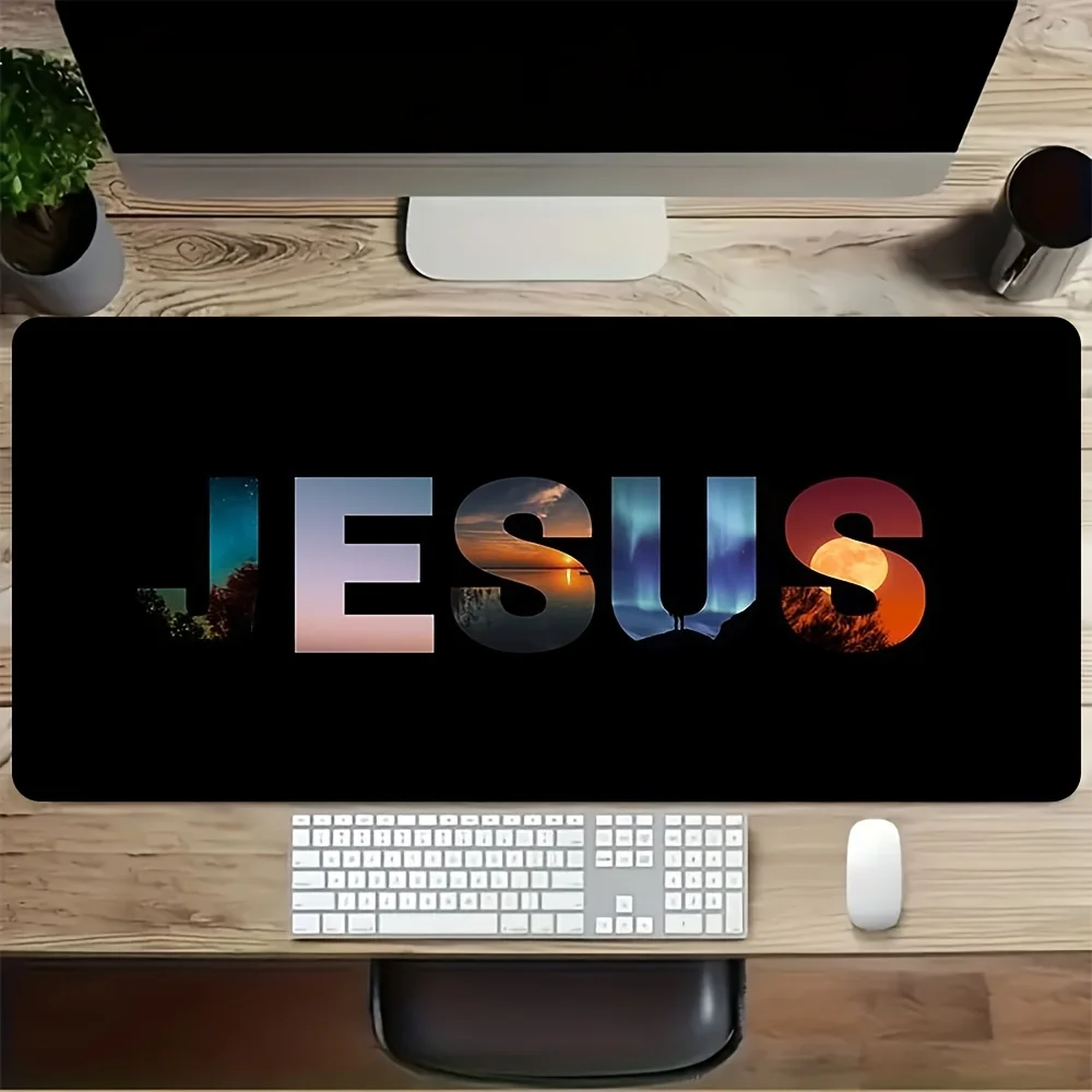 Jesus Religious Word Art Design Extended Gaming Mouse Pad Durable Rubber Keyboard Mat Office