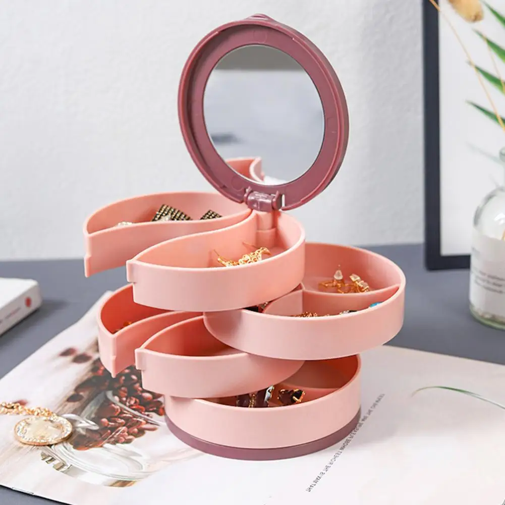 Jewelry Storage Box Plastic Multi-Layer Dustproof Moisture-Proof 360-Degree Rotation Jewelry Organizer with Built-In Mirror 90%
