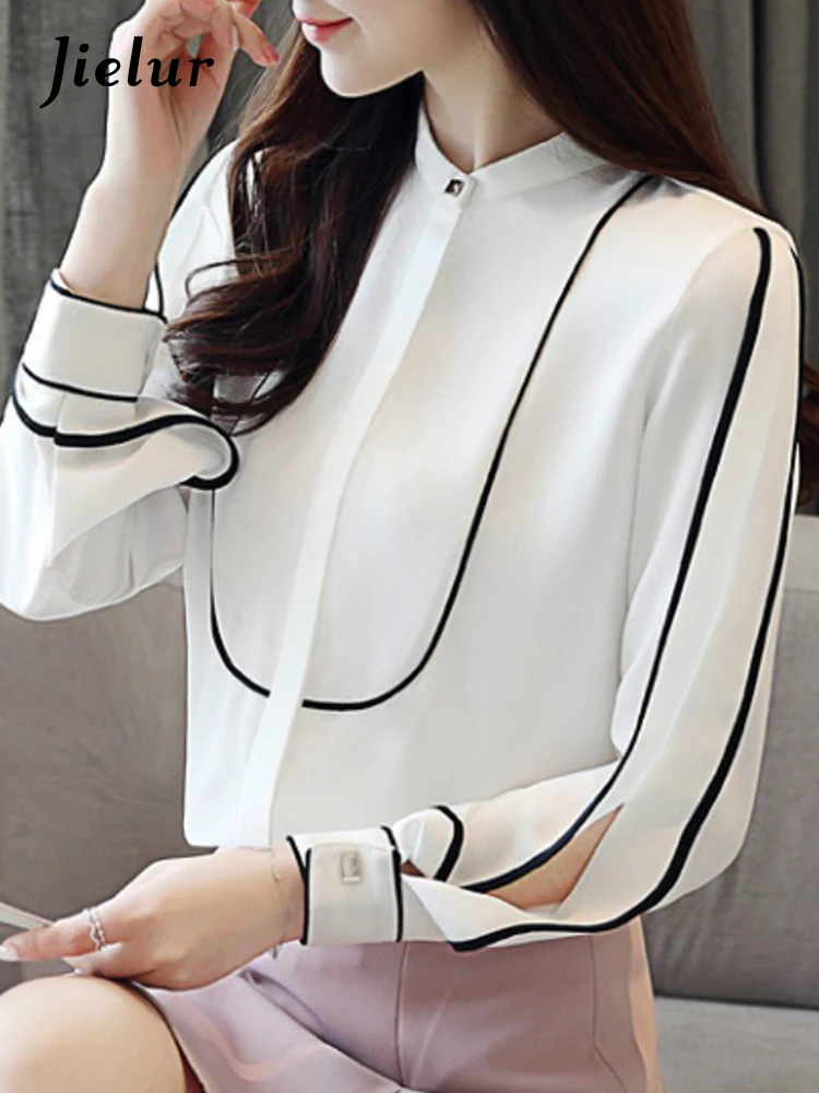 Jielur с длинным рукавом OL офисная летняя женская рубашка для женщин Blusas женские топы и блузки шифоновые рубашки женский топ S-XXL размер