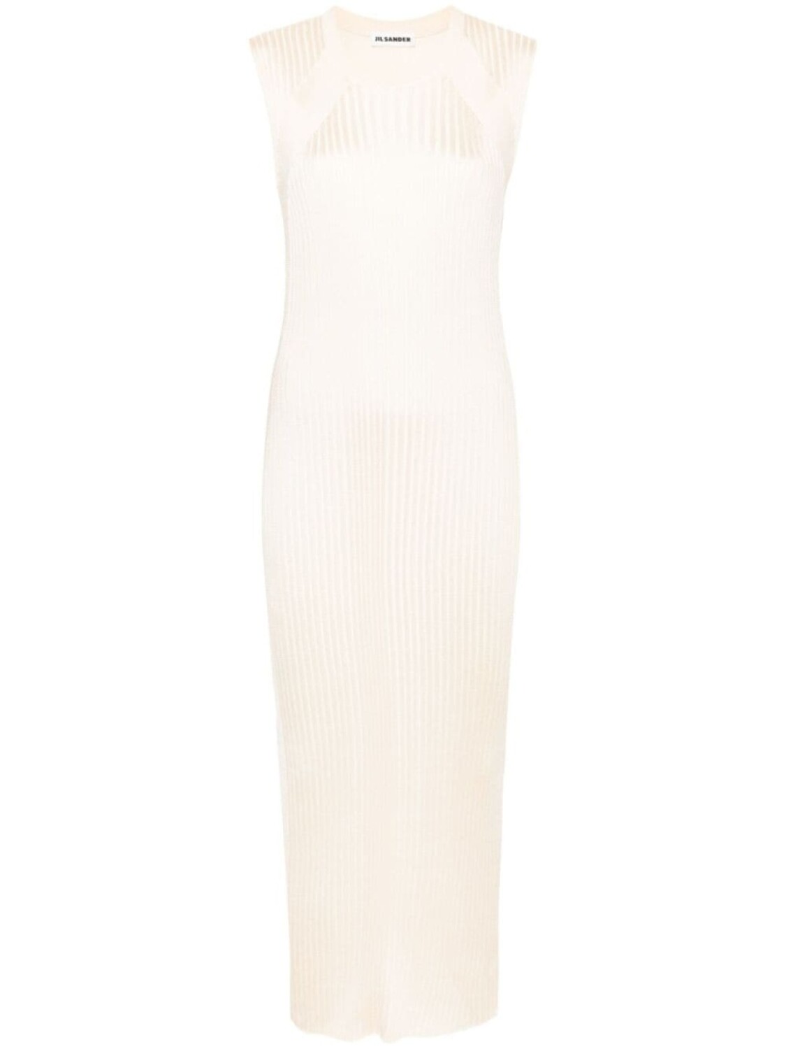 Jil Sander платье макси в рубчик, нейтральный цвет