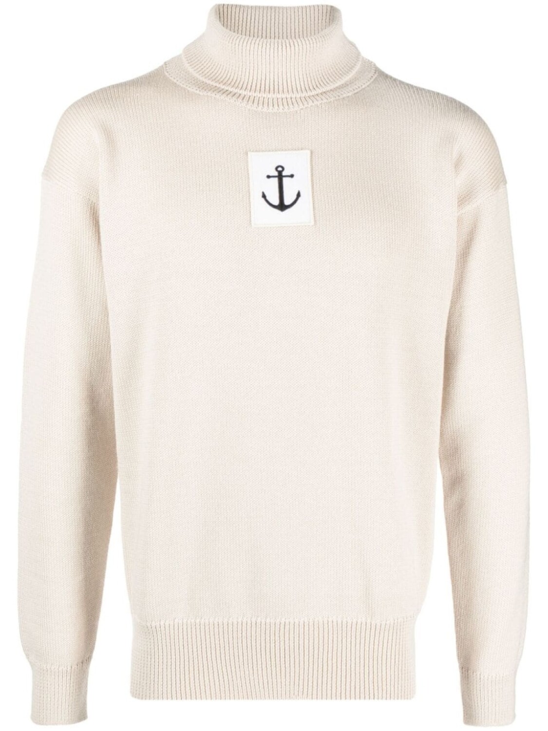 Jil Sander шерстяной джемпер с нашивкой-логотипом, нейтральный цвет