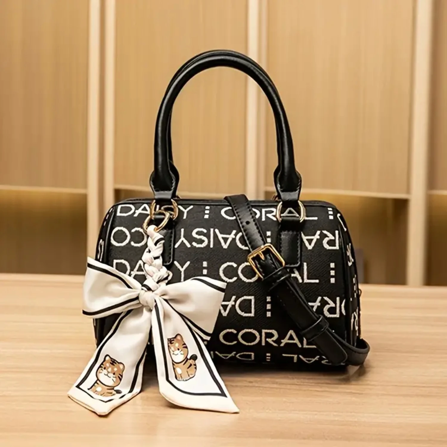 Scarf Decor Handbag, Women's Letter Detail Purse Trendy Zipper Shoulder Bag With Adjustable Strap