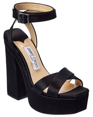 Jimmy Choo Gaia 140 Женские атласные сандалии на платформе, Черный, NA