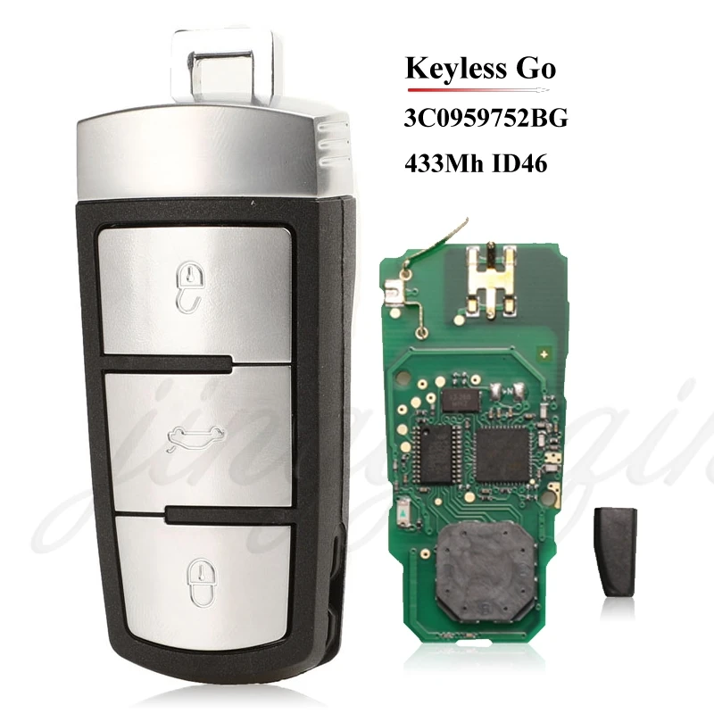 Jingyuqin 3C0959752BG /BA Smart Keyless go дистанционный ключ-брелок от машины 3 кнопки 434 МГц PCF7936 ID46 для VW Passat CC Passat Magotan