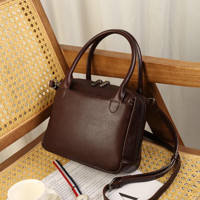 Johnature Винтажная сумка из натуральной кожи, простая и универсальная, однотонная, на плечо, кроссбоди кофейный