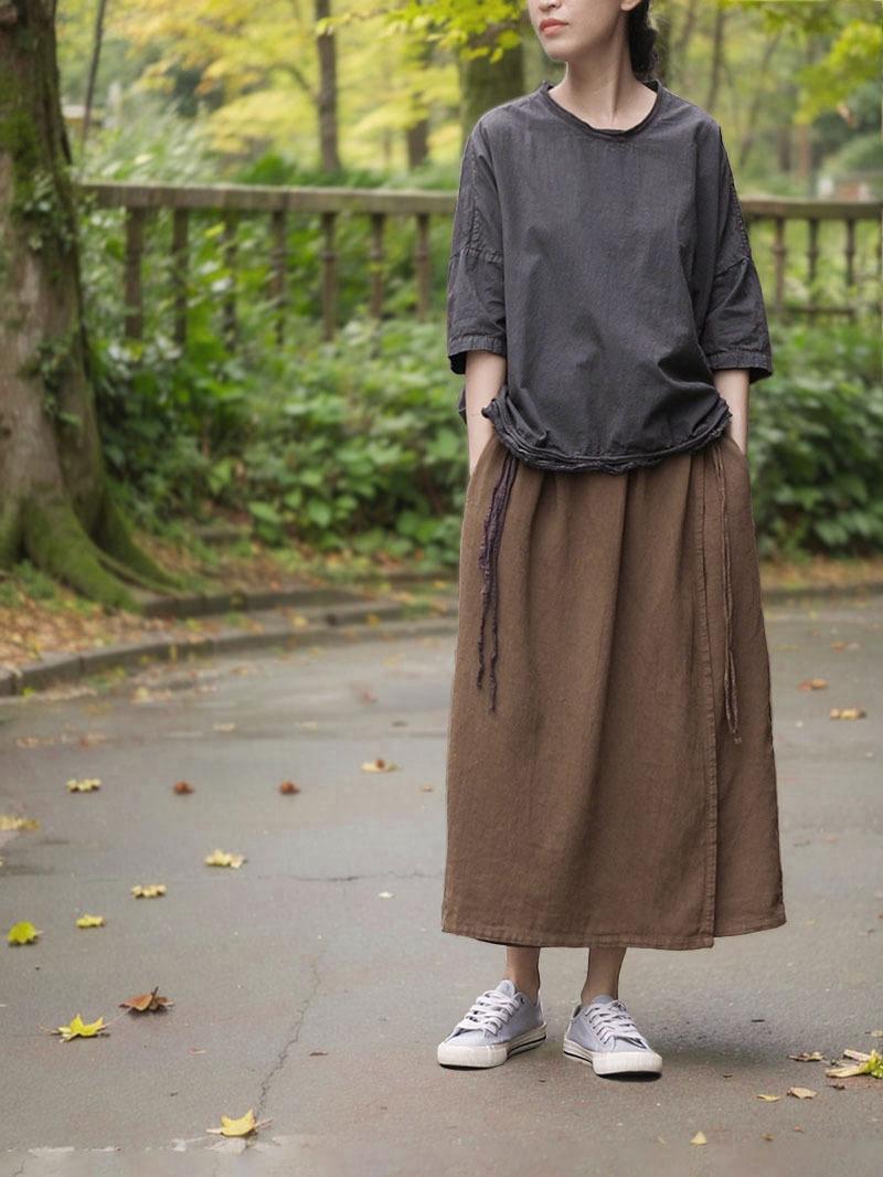 Johnature Женская осенняя винтажная однотонная юбка, модная повседневная юбка в китайском стиле с эластичной резинкой на талии L