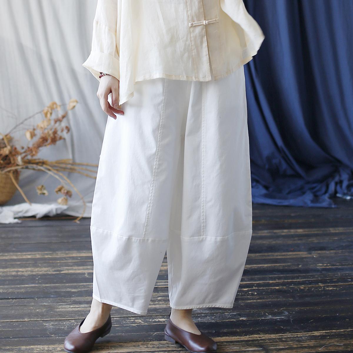 Johnature Женские винтажные пэчворк широкие брюки с эластичной талией белые брюки осенние карманы женские длинные брюки One Size белый