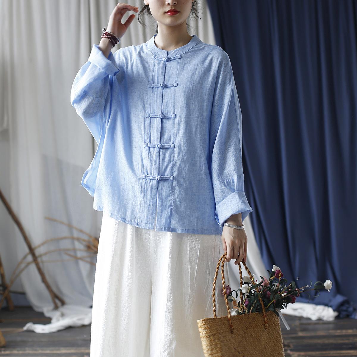 Johnature Женские винтажные розово-красные рубашки, топы, блузки на пуговицах с длинными рукавами, весенние свободные женские рубашки One Size синий