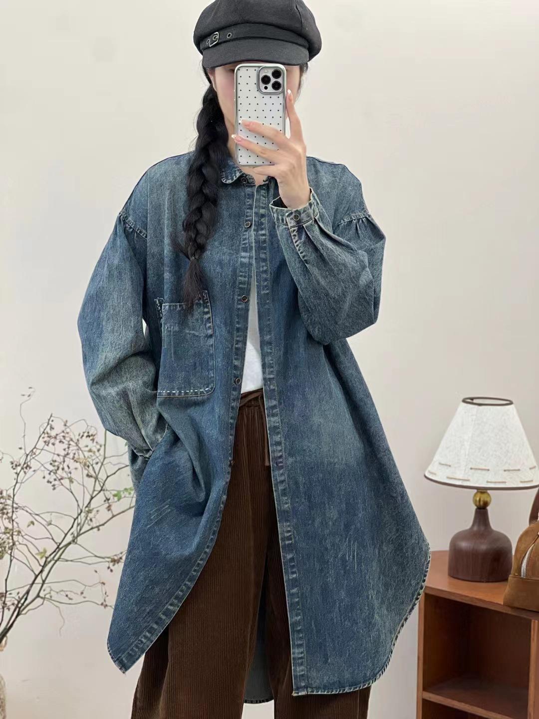 Johnature Женское осеннее винтажное ретро-стирка с отложным воротником ковбойское пальто модное повседневное свободное однобортное пальто One Size