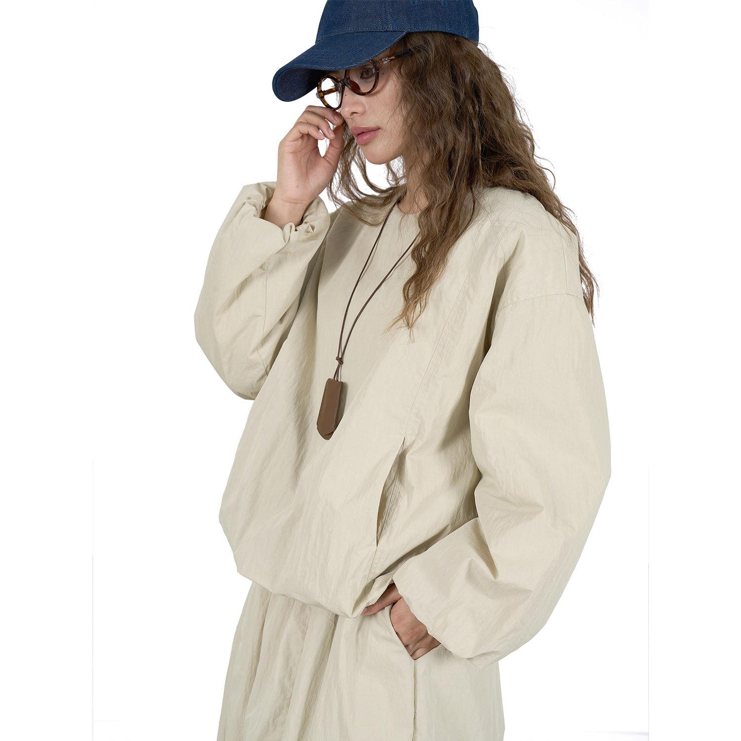Johnature Осень Зима Японский хлопок тампон Топы Повседневный Простой Пуловер Свободный Однотонный Карманы Женские Топы S бежевый