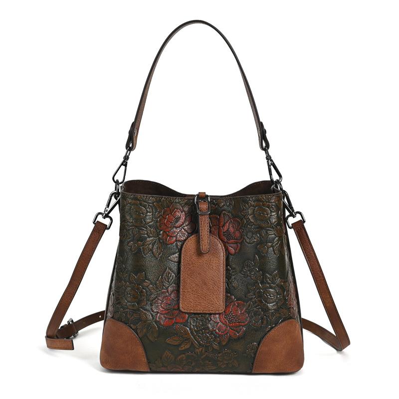 Johnature Сумка-ведро ручной работы с цветочным принтом, женская сумка с тиснением в стиле ретро, сумки через плечо большой емкости зелёный