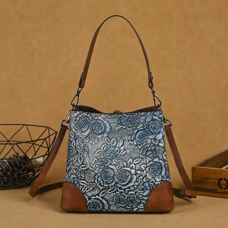 Johnature Сумка-ведро с тиснением в стиле ретро, большая вместимость, женская сумка ручной работы, универсальные сумки через плечо серебряный