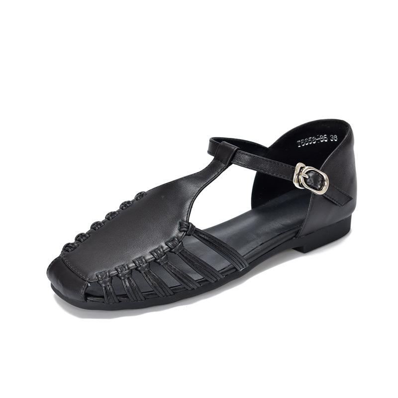 Johnature Универсальные плетеные дышащие сандалии на плоской подошве из натуральной кожи с мягкой подошвой 40 чёрный