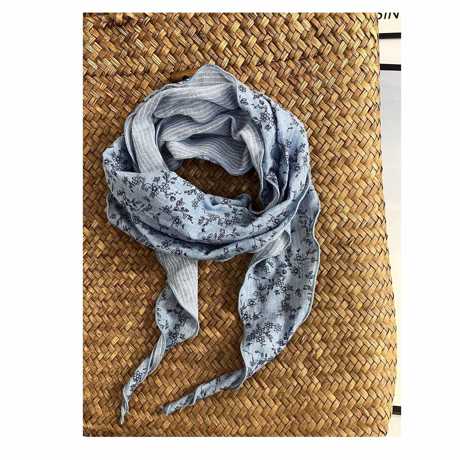 Johnature Японские Печатные Двусторонние Треугольные Женские Тонкие Клетчатые Шарфы В Форме Ромбовидной Формы Украшения светло-синий