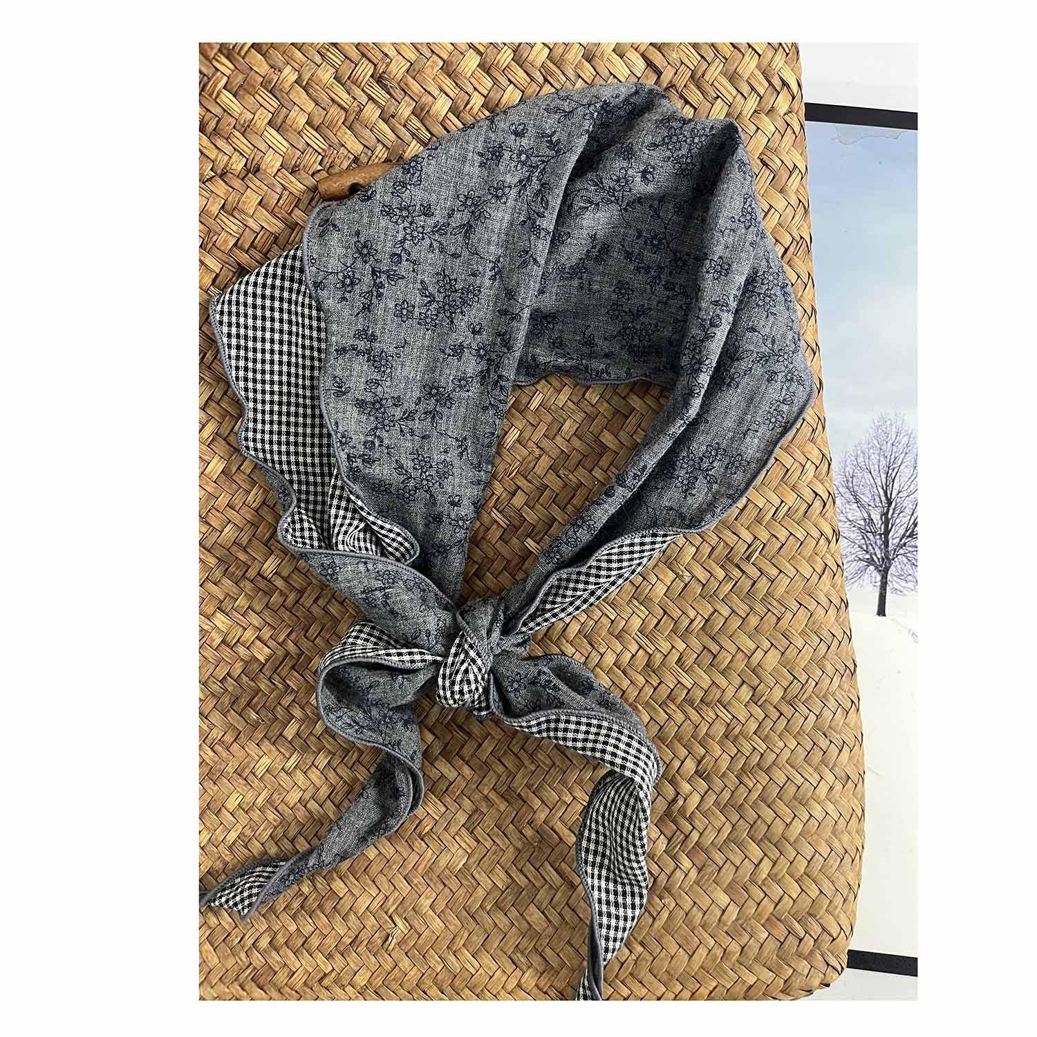 Johnature Японские Печатные Двусторонние Треугольные Женские Тонкие Клетчатые Шарфы В Форме Ромбовидной Формы Украшения темно серый