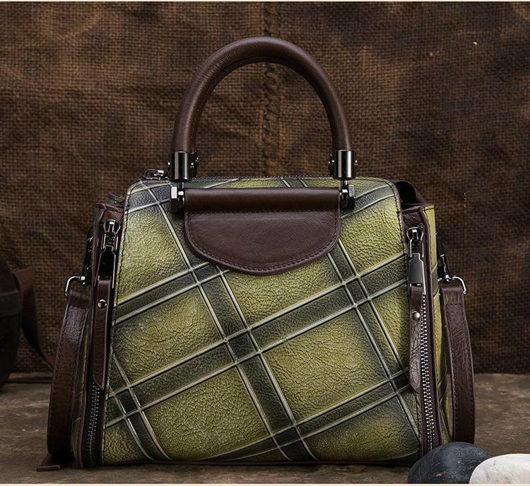 Johnature винтажная женская сумка из натуральной кожи, ручная работа, тисненая клетчатая сумка, сумки из натуральной яловой кожи на плечо и через плечо зелёный
