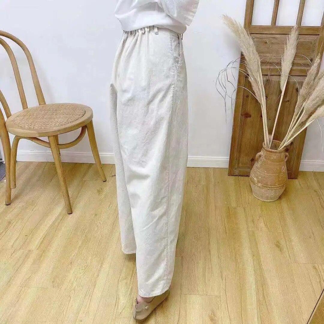 Johnature винтажные женские брюки летние повседневные однотонные шаровары с карманами длиной до щиколотки One Size бежевый