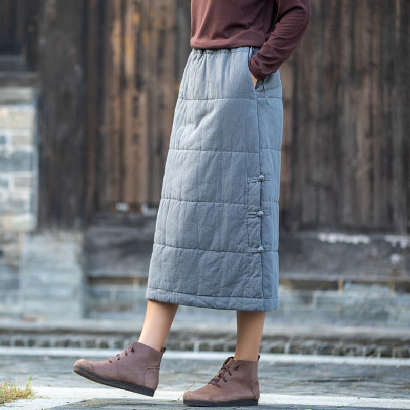Johnature женские винтажные хлопковые льняные юбки с эластичной резинкой на талии однотонная одежда осень-зима плюс хлопковые теплые юбки на пуговицах One Size серый