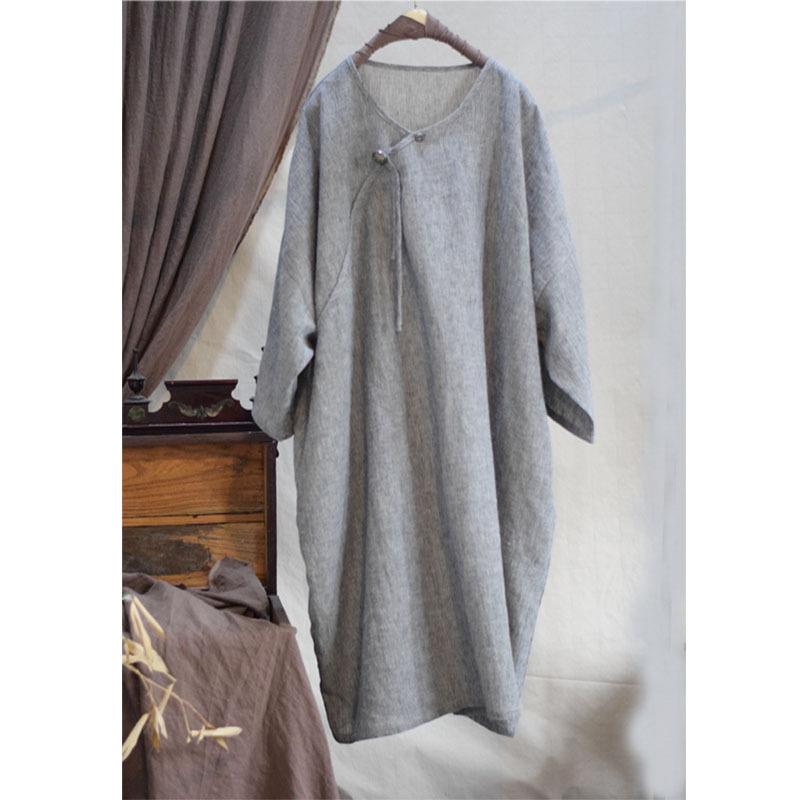 Johnature женское весеннее однотонное моющееся платье с длинными рукавами в китайском стиле винтажное платье с v-образным вырезом One Size серый