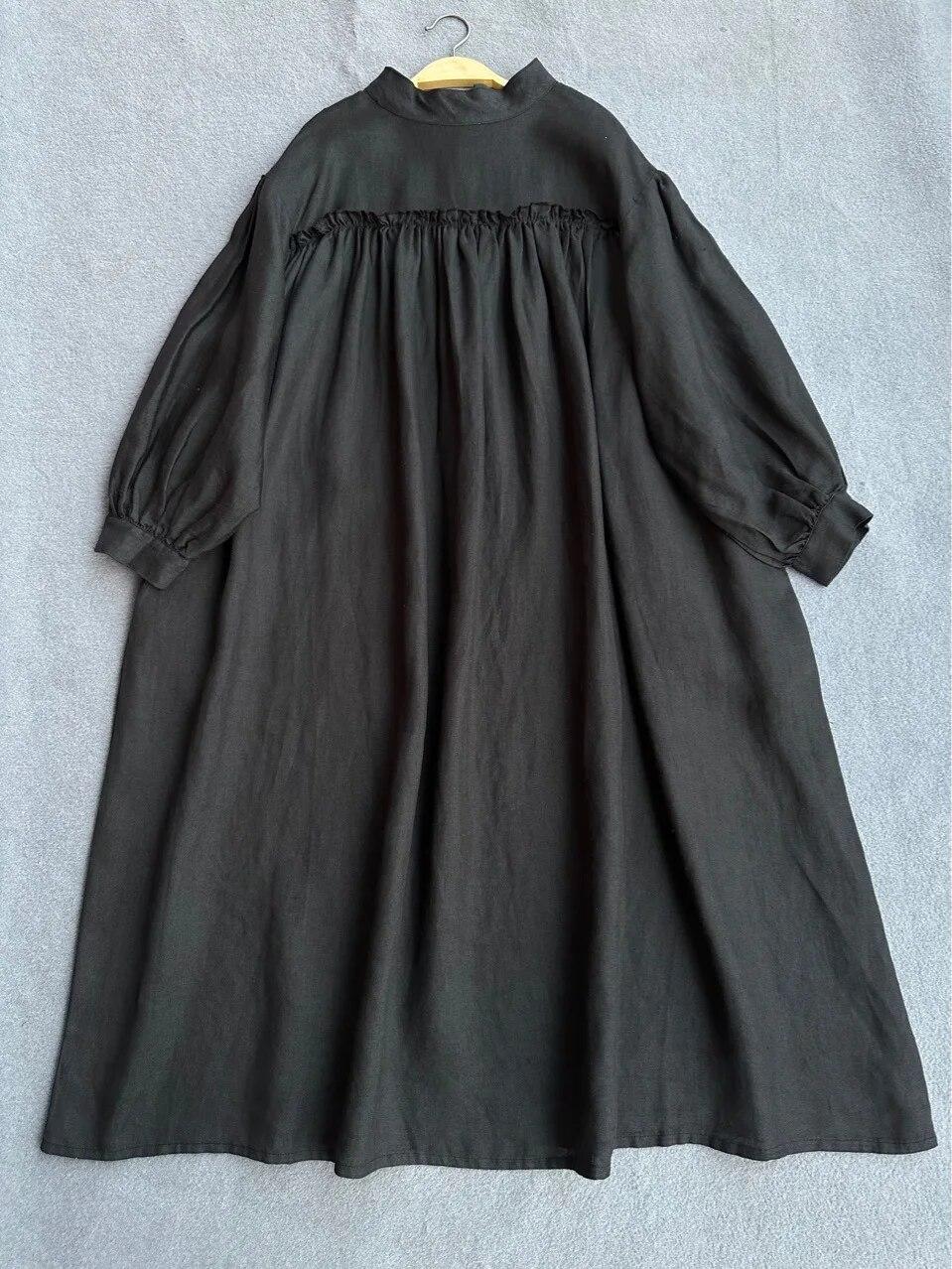 Johnature японская кукла с лацканами грибок платье с длинными рукавами женские весенне-осенние однотонные винтажные женские платья One Size чёрный