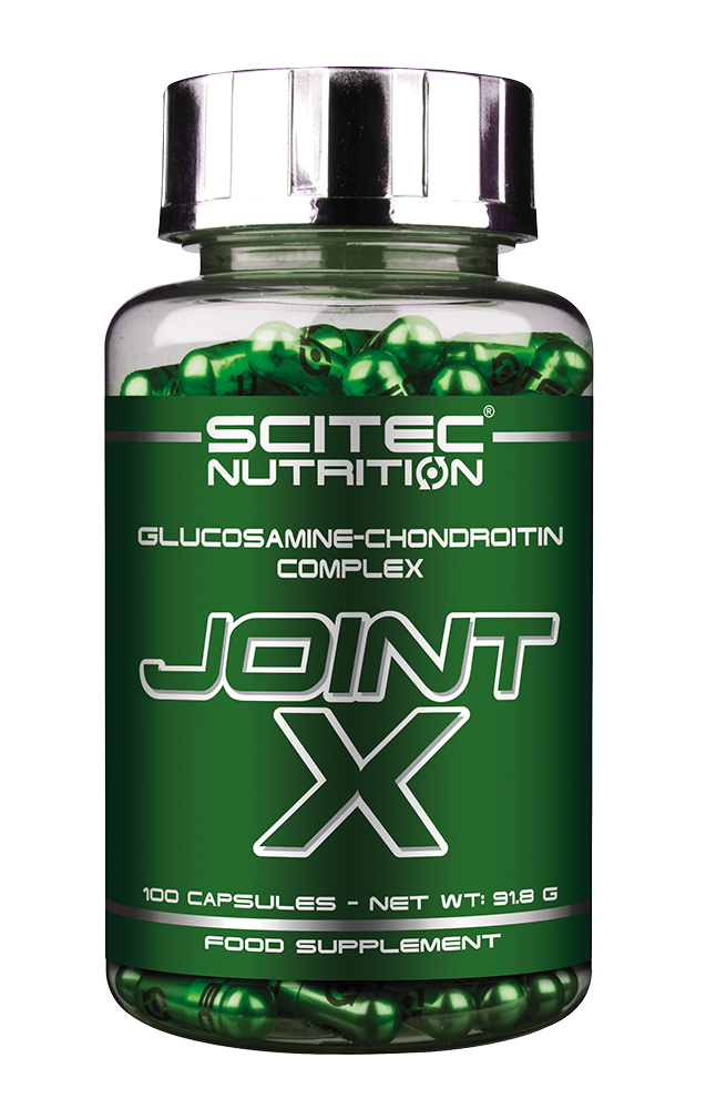 Joint-X Scitec Nutrition - спеціальна професійна добавка в капсульній формі для лікування та захисту суглобів спортсмена. Головними інгредієнтами продукту є: глюкозамін, хондроітин та метилсульфонилметан. Перші два компоненти суттєво покращують метаболізм хрящів, притуплюють їхній розпад, нормалізують відкладення кальцію в організмі, зменшують болі при великих навантаженнях і є активними учасниками формування зв'язок та з'єднувальних тканин. Окрім цього, Joint-X Scitec Nutrition укріплює та оздровлює Ваш хребет.