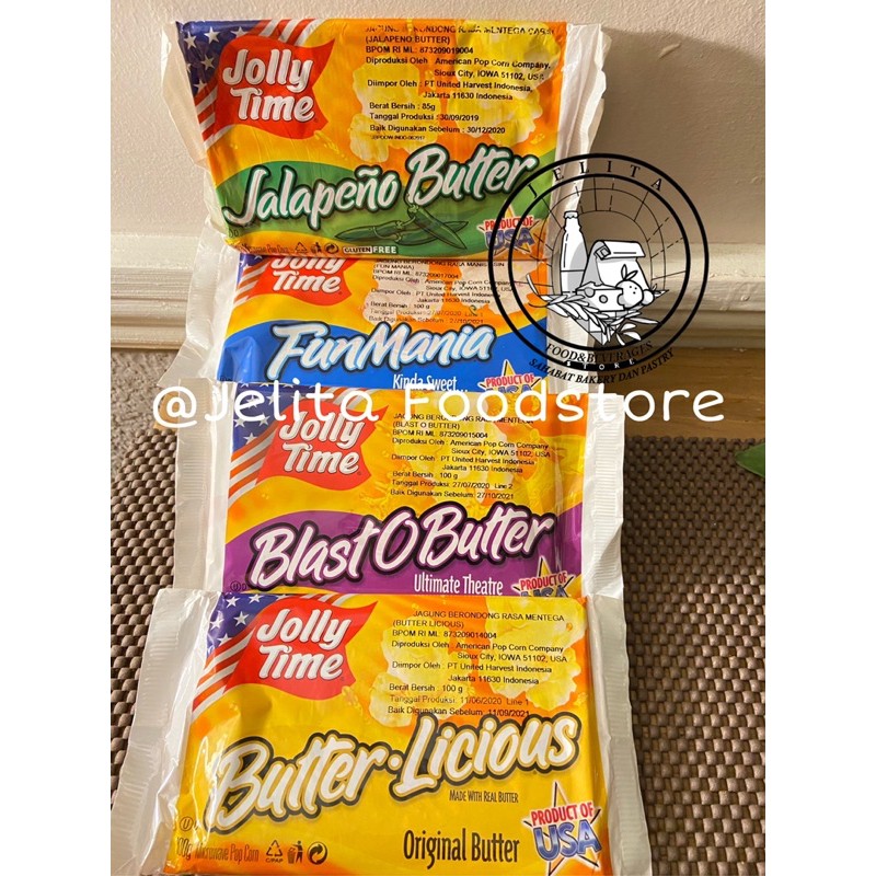 Popcorn Jollytime 100gr , snack terbaik sepanjang masa ada variant butter licious, jalapeno butter, the big cheez, Fun Mania, Blast O Butter