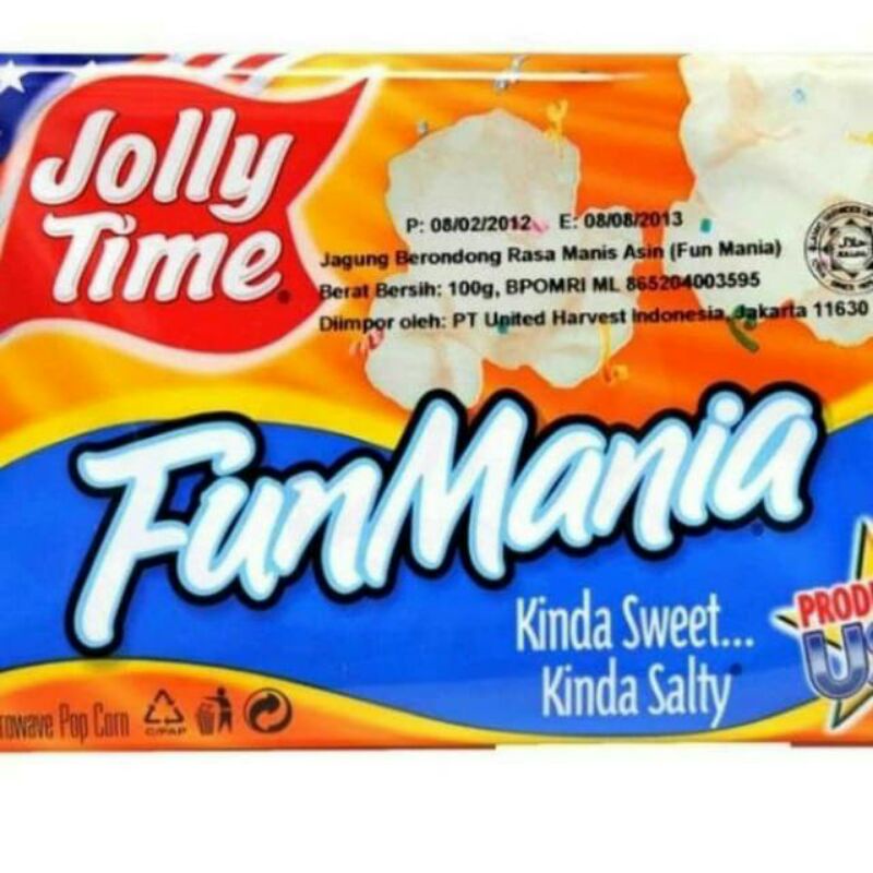 Jolly Time Fun Mania 100gr adalah popcorn bercita rasa asin manis yang dapat Anda siapkan hanya dalam waktu 2 menit dengan menggunakan microwave. Terbuat dari jagung berkualitas terbaik dengan teknologi terkini, popcorn ini memiliki cita rasa yang nikmat dan lezat. Selain itu, Anda tidak perlu khawatir popcorn akan meletup dan tersebar berantakan karena akan terjaga di dalam kemasan tertutup hingga matang dan saat anda membukanya.
