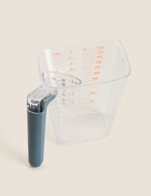 Get your recipes spot-on with this easy-read measuring jug set from Joseph Joseph. This handy piece has an angled shape and a soft grip handle for effortless pouring. The set is comprised of a large 1-litre jug and a small 50ml design. Both fit neatly together for space-saving storage.