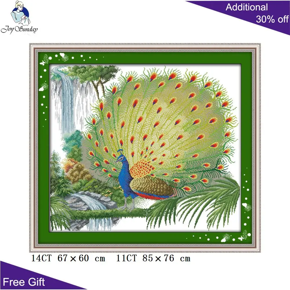 Joy Sunday Павлин, украшение для дома, D150, 14CT, 11CT, штампованный и Счетный Павлин, расправленный хвостом, наборы для вышивки крестиком