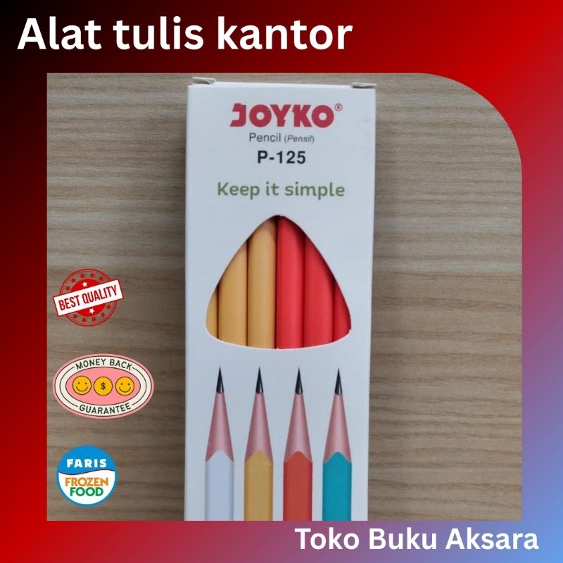Pensil Joyko P-125 2B adalah alat tulis berkualitas tinggi yang dirancang untuk berbagai kebutuhan menulis dan menggambar. Dengan panjang 17,6 cm dan diameter 0,8 cm, pensil ini memiliki bentuk segitiga ergonomis yang memberikan kenyamanan saat digunakan dalam waktu lama. Isi grafit 2B-nya tebal dan kuat, menghasilkan garis yang halus dan konsisten, cocok untuk menggambar, membuat sketsa, serta pengisian lembar jawaban komputer karena dapat dipindai dengan baik.