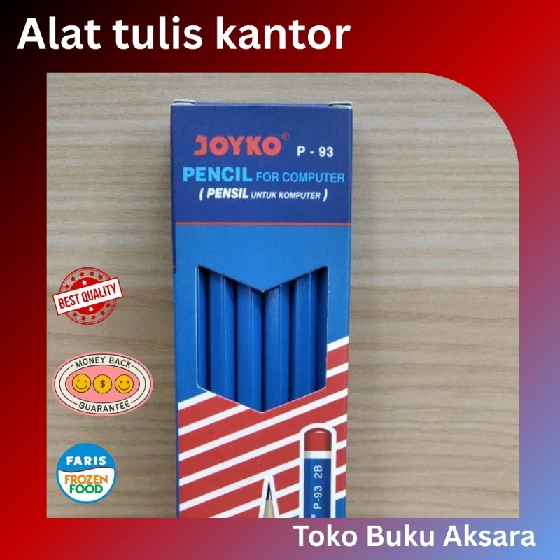 Pensil Joyko P-93 2B adalah alat tulis berkualitas tinggi yang dirancang untuk memenuhi berbagai kebutuhan menulis dan menggambar. Dengan panjang 17,7 cm dan diameter 0,8 cm, pensil ini memiliki bentuk heksagonal yang ergonomis, memberikan kenyamanan saat digunakan dalam waktu lama. Terbuat dari kayu berkualitas tinggi, pensil ini tidak hanya tahan lama tetapi juga mudah diraut, menjadikannya pilihan ideal untuk pelajar, mahasiswa, dan profesional.