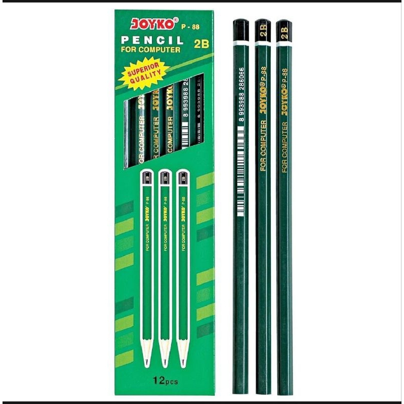 Pensil joyko 2 b. =siap melayani grosir dan eceran =pensil joyko p-88 2b 1 box x12 pcs ,,tipe 2b .ukuran pensil;17.7x0.8 cm,,,,ukuran boxs ;18x4.5x1.5 cm,,,bentuk ;hexagonal grip ,,kayu berkualitas tinggi . isi pensil yang kuat . harga 1 boxs 12 pcs
