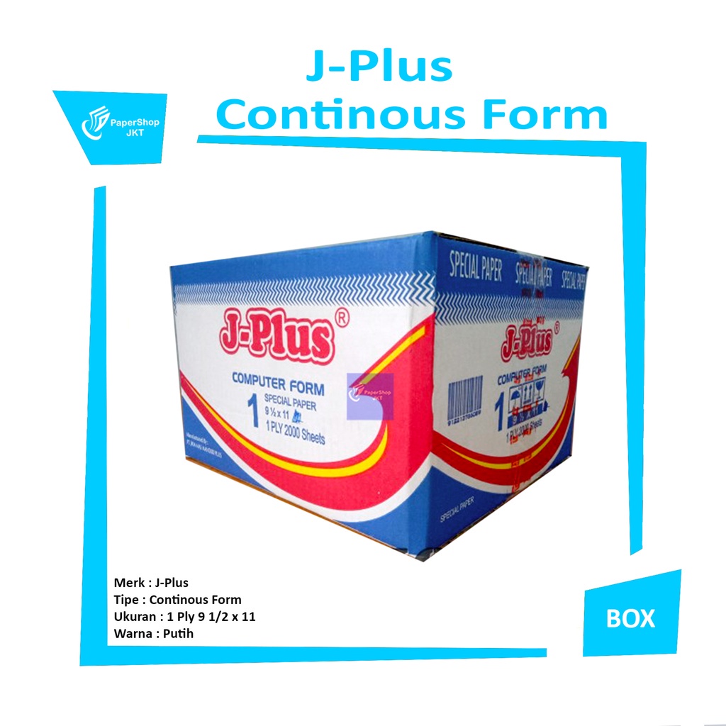 Jplus - Continous Form 1 Ply 9 1/2 x 11 Hvs - Kertas Komputer