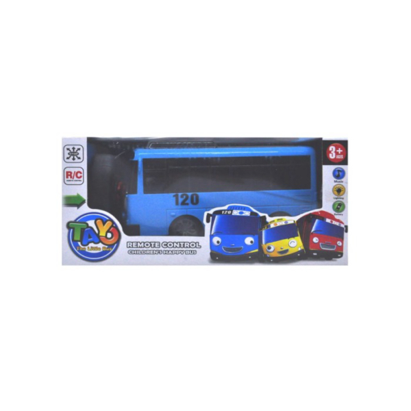 Mainan mobil remote bus tayo dengan dilengkapi musik dan lampu,dapat berjalan dengan sangat lancar. terdapat 2 on, 1 untuk jalan tanpa lagu, 1 lagi jalan dengan lagu dan lampu. terdapat 3 varian warna bus tayo yaitu : biru,merah,kuning