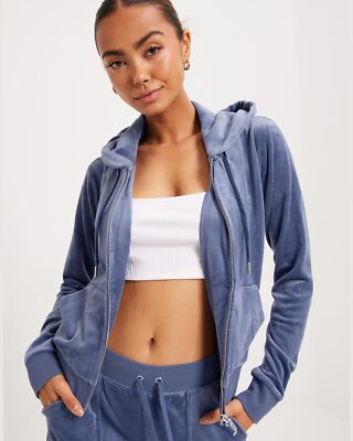 Juicy Couture Wmns Robertson Classic Velour Zip Trough Hoodie Women серый синий