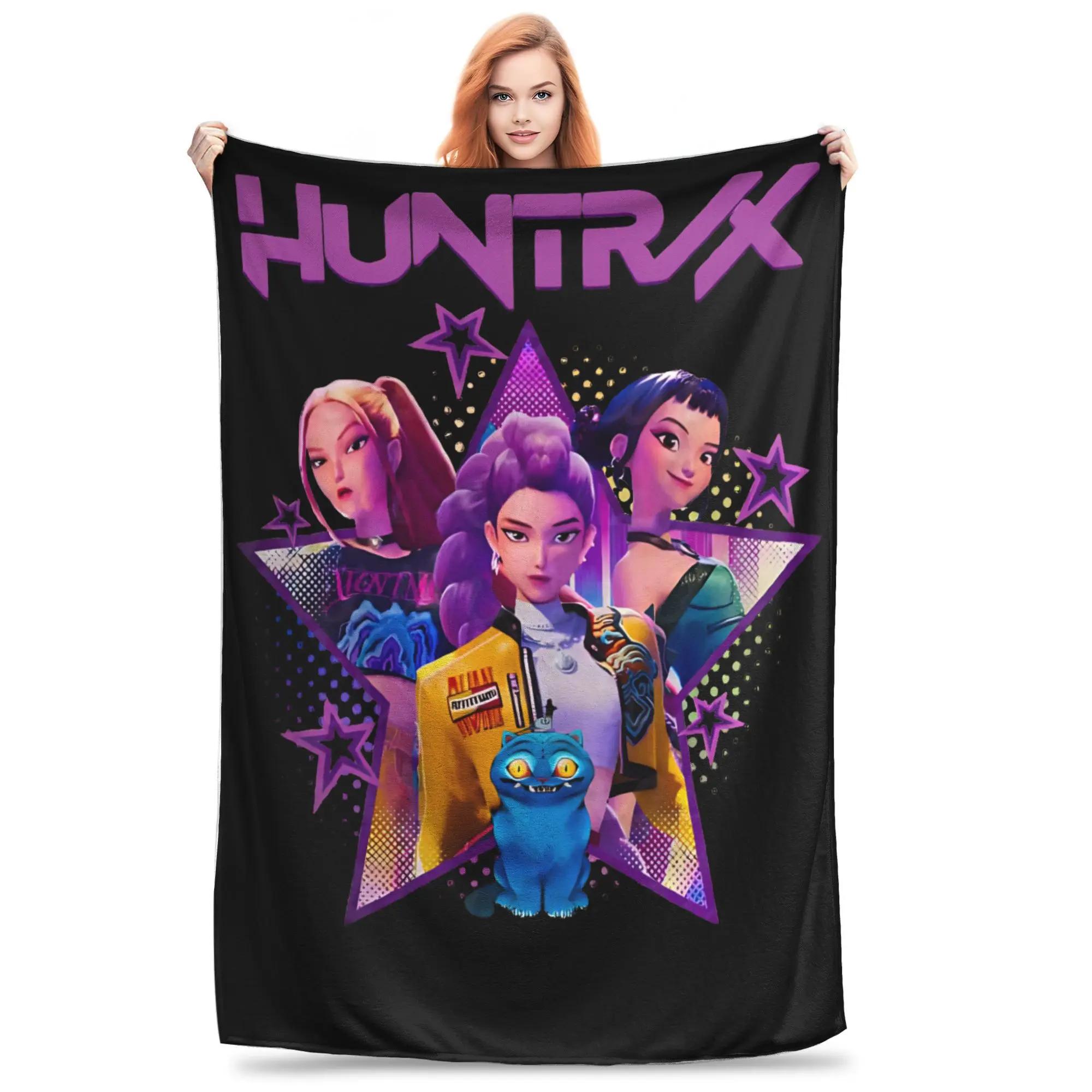 K-pop Охотник на демонов Huntrix Girls Теплое мягкое одеяло Дорожное плюшевое одеяло Новинка Одеяло для дивана Кровать Фланелевое покрывало Покрывало для дивана 75x100CM